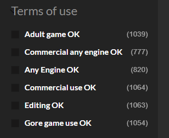 Commercial, Gore and Adult game are ok, as long as it's not illegal.
