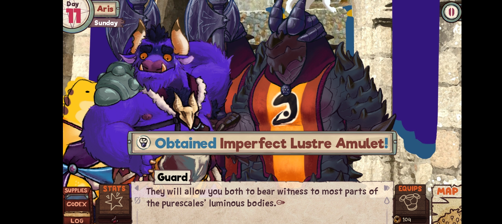The first one is during Day 11 in Aris, after Kiligan and Mac entered Purescale Entryway and received Imperfect Lustre Amulets, an error screen occurred that cannot be fixed with Ignore. (By using Trailmarker in the title screen, the player can continue, but lost the Necklace and the Hammer which were given in Aris)
