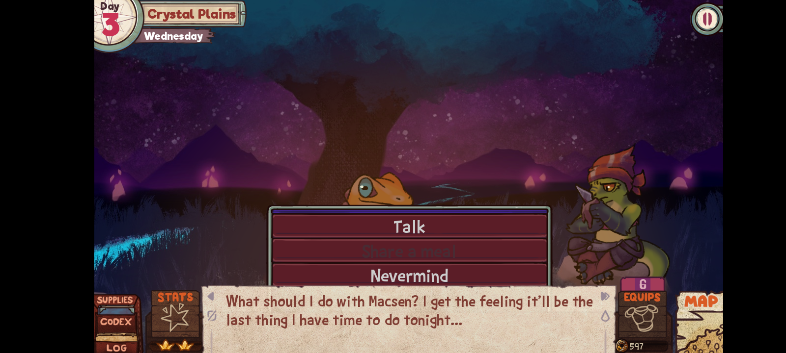 Which may definitely require items like rations or foragemeal I think?, but I can't press it even though there are rations or foragemeal (I have 2 versions of the save file separately separating rations and foragemeal).