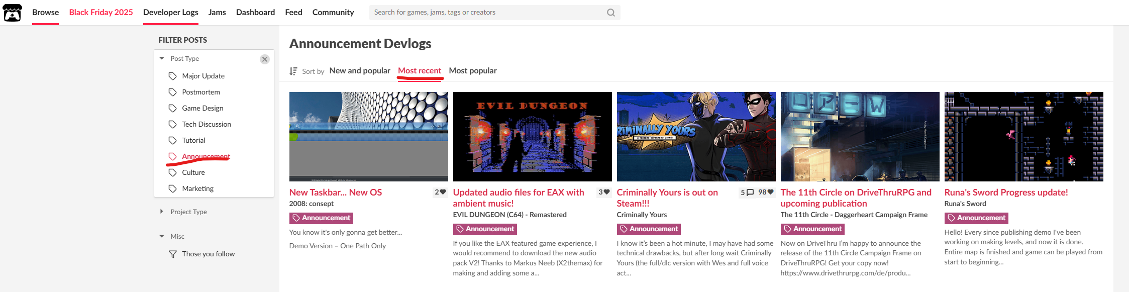 I recently made a blog post announcing my project, Teryndor Caelorn's Quest, but it's not showing up in the 'Recent Announcements' section. Did I publish it incorrectly?