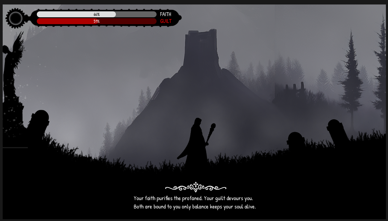 2D exploration. A monk in a corrupted abbey. Purify with rhythmic prayers. Faith protects, Guilt consumes · By
