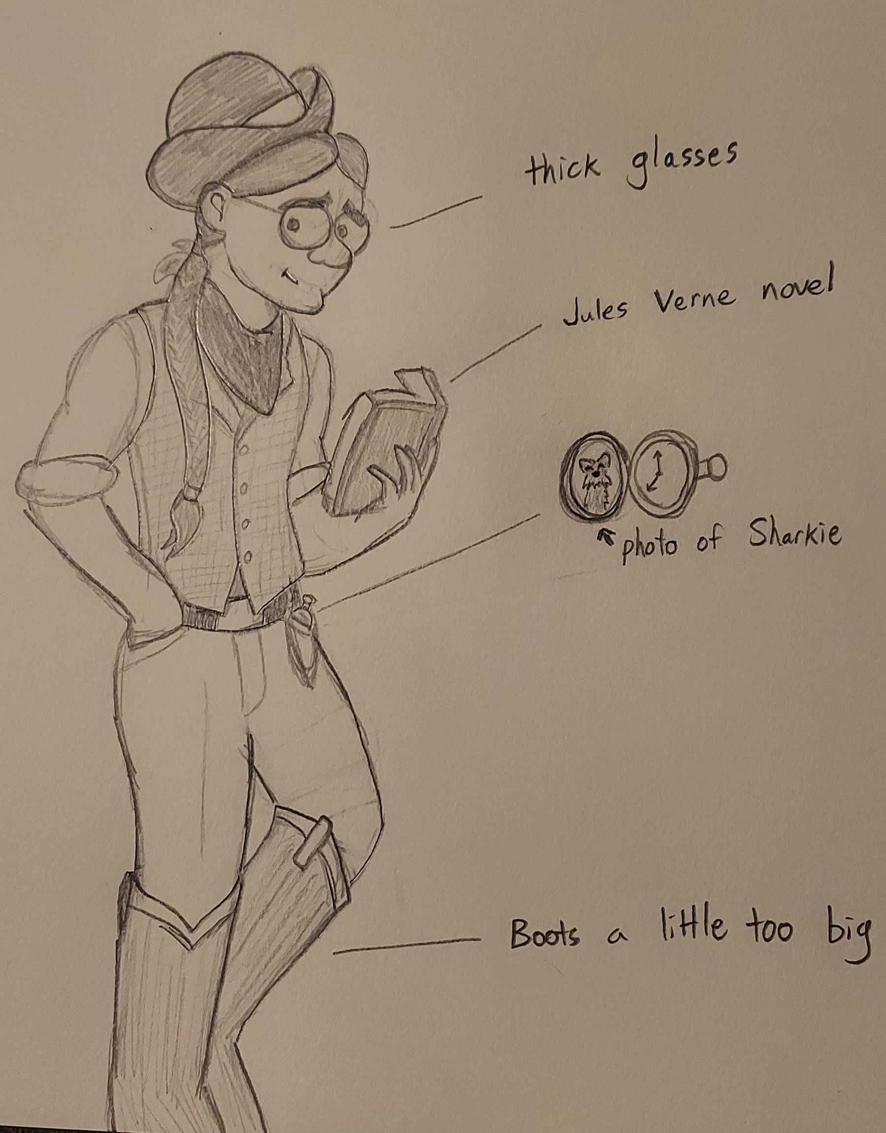 My attempt at drawing how I imagine Ash. Don't be fooled by their appearance! They were a hardened (white collar) criminal back east in the big city. Curious to see other people's takes as well, especially for different backstory choices!