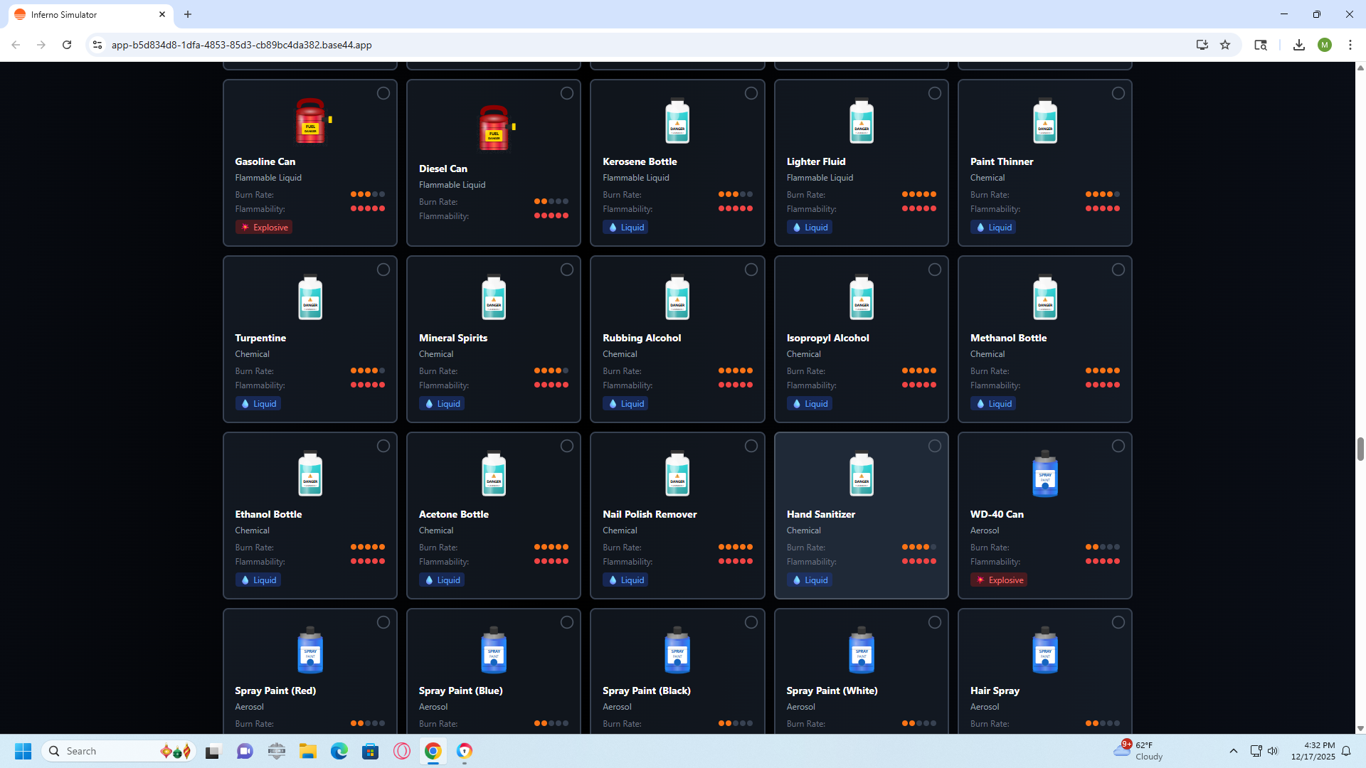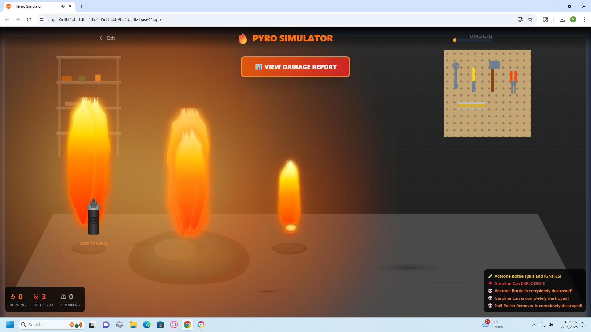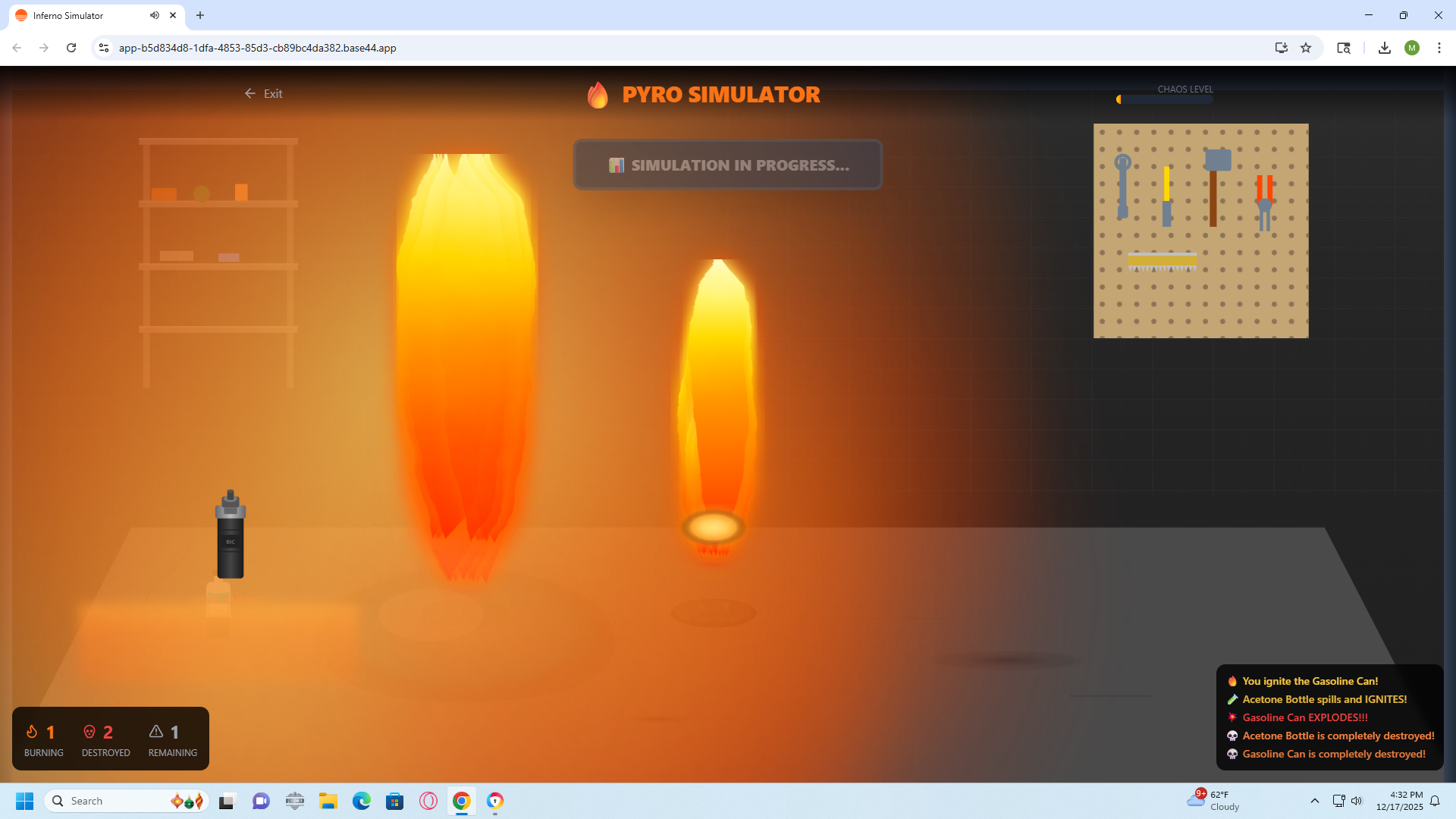 PYRO FIRE STARTER is a hyper-realistic fire behavior simulator designed exclusively for educational purposes. This simulation-only game allows players to experience the complex physics of fire spread, explosions, and chain reactions using over 500 household items, without any real-world application or encouragement of dangerous behavior.
