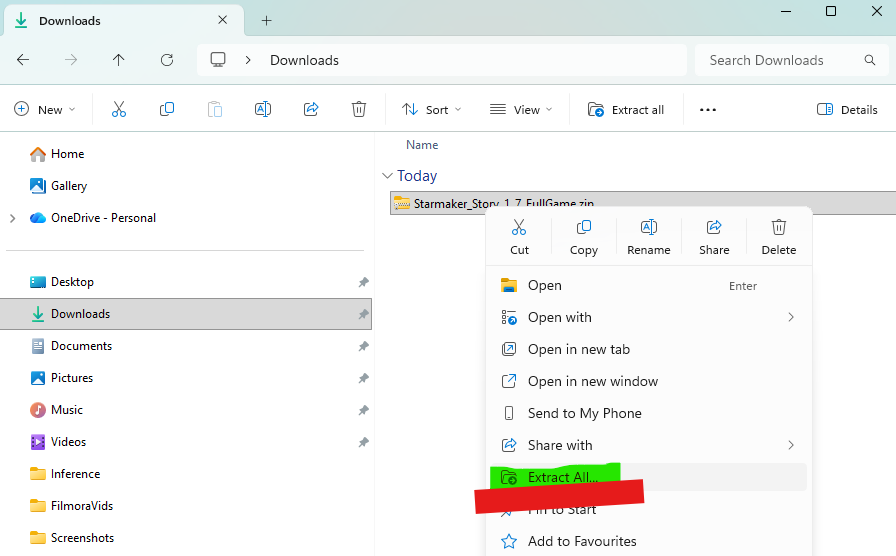 Right click and extract Starmaker_Story_1_7_FullGame.zip in your Downloads folder