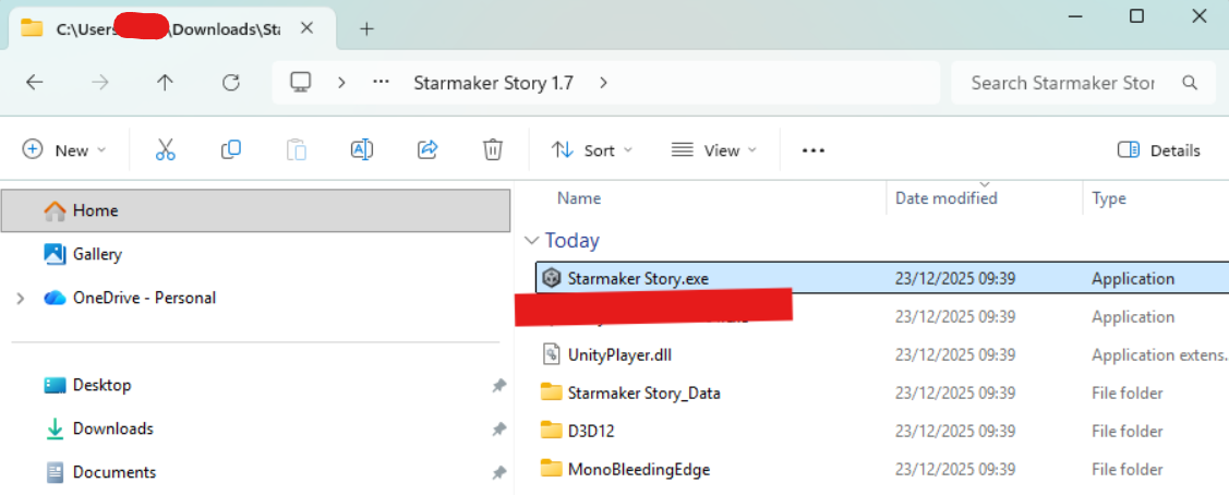 In the Downloads\Starmaker_Story_1_7_FullGame\Starmaker Story 1.7 folder double click the Starmaker Story.exe