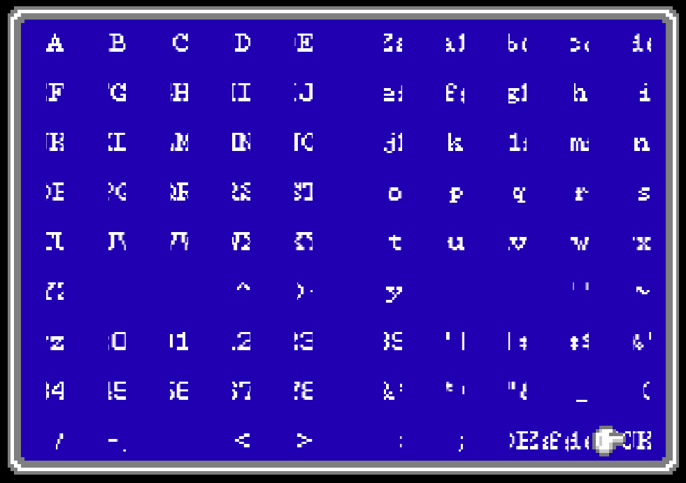 Hey, trying to get this plugin working and I'm running into an issue with the text apparently misaligning ingame. I've verified that the png file for the font is set up correctly (all of the letters are on a 16x16 grid) but I just can't seem to work this out. Below is a screenshot of the name input screen, along with a copy of the png file I'm using.