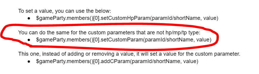 $gameParty.members()[0].addCParam(paramId/shortName, value)