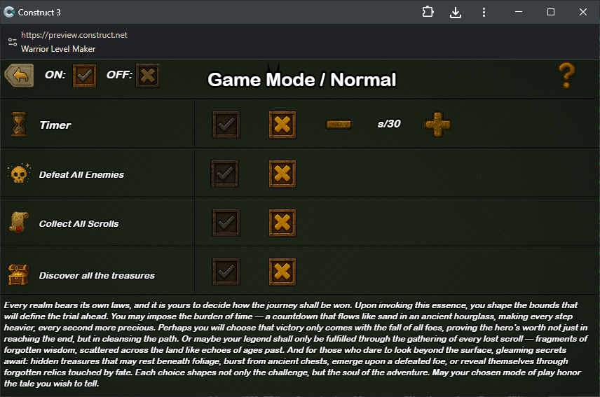 The reason for the sale is financial. As I was not able to properly promote the game, it is currently just taking up space on Google Play. The game is rich in features, especially in the editor mode. Like many dedicated developers, it cost me many sleepless nights and a lot of problem-solving, since I developed this game completely alone, from scratch.