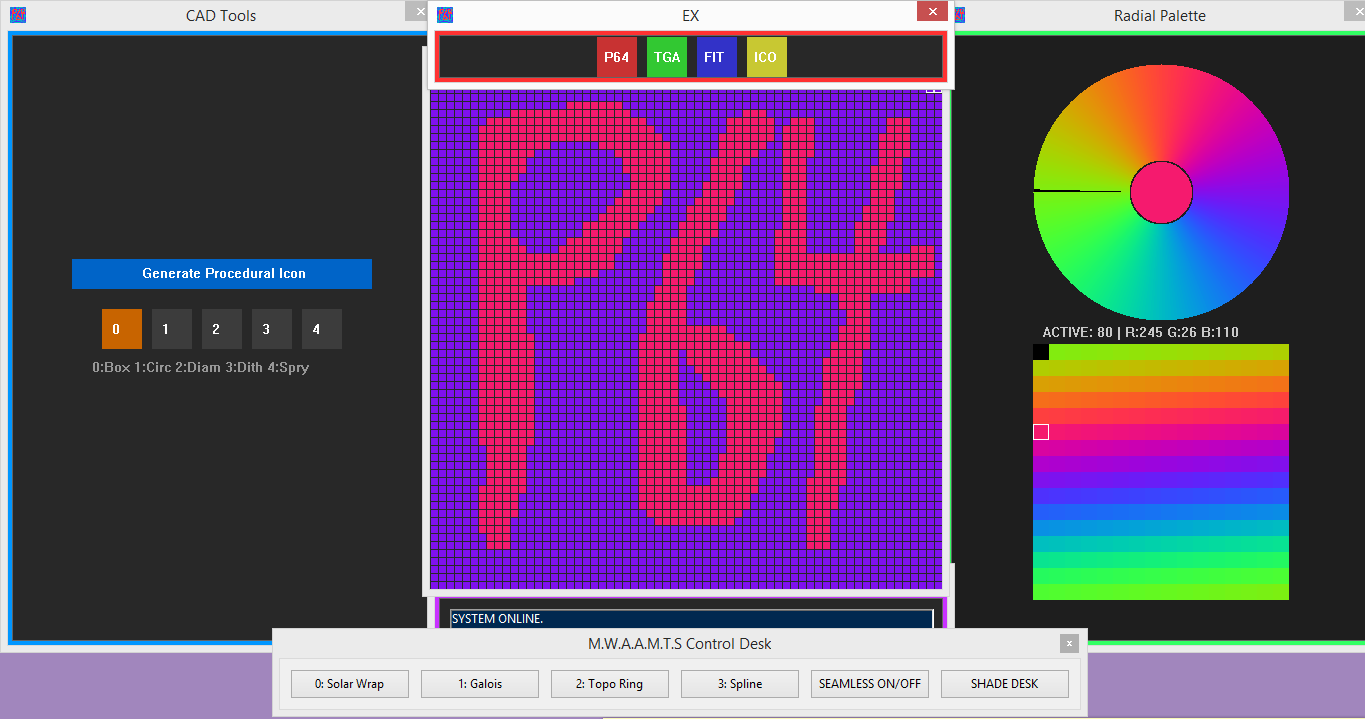 It support export to TGA, P64, FITS, and ICO.