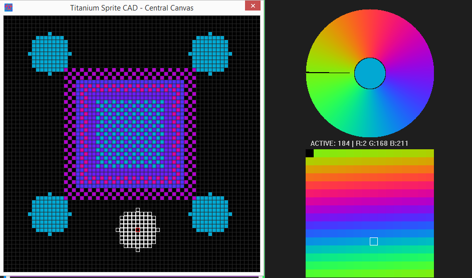 A sprite editor with a special custom multi-window system, with custom brushes, easy sizing for brushes in editor window.