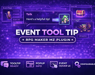 A lightweight, bitmap-based mouse hover tooltip system for RPG Maker MZ.