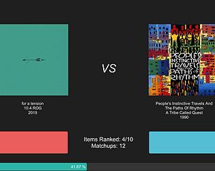 Rank albums, songs, and images in 1 on 1 matches, then export the results!