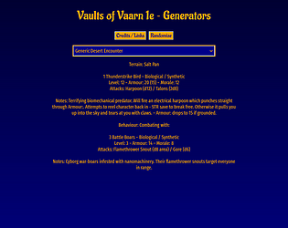 Vaults of Vaarn random tables oracle generators
