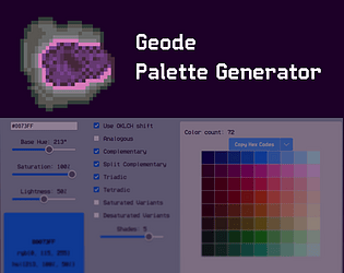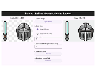 Turn any image into pixel art! Downscale, recolor, and play with custom palettes.