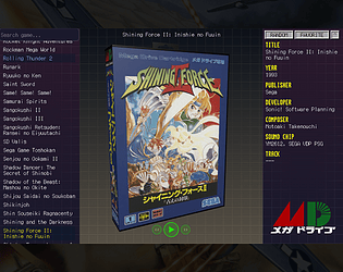 Interactive gallery of Sega Mega Drive game covers and YM2612 player