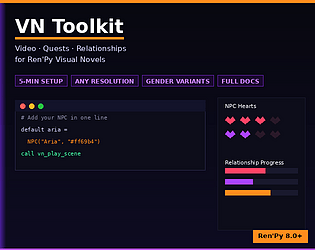 Drop-in video scene, quest, and NPC relationship system for Ren'Py visual novels.