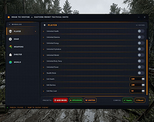 Road to Vostok Cheat: Unlimited resources, instant crafting, weather control, no permadeath, and more.