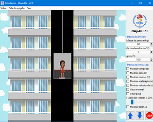 Simulação física que trata do problema do peso aparente de uma pessoa dentro de um elevador em MRUV.