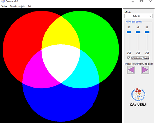 Aplicación donde juntas dos colores entre los primarios, blanco y negro, también mostrando el resultado de la mezcla.