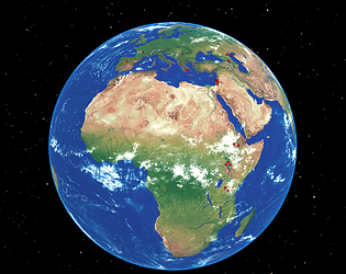 A 3D globe featuring major archeological sites relating to the genus Homo.