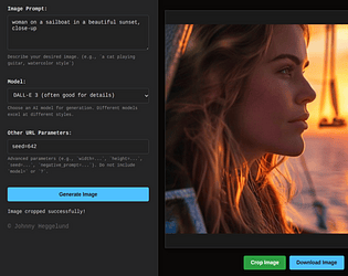 AI Image Generator: Create stunning visuals with advanced settings, dark mode, and versatile crop tool.