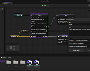Create branching stories/dialogues through visual logic flows with minimal coding knowledge.