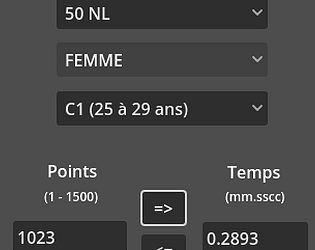 Une calculatrice simple de conversion des temps en points par catégorie