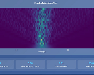 Use the sliders to adjust parameters and watch the temporal, spectral, and evolution plots update instantly.