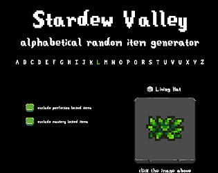 Get random Stardew items for each letter of the alphabet!