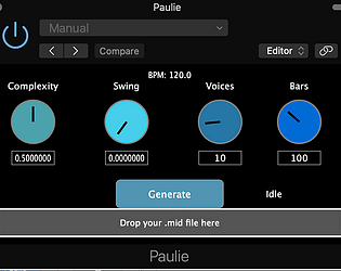 Paulie, the polyrhythm plugin, generates drum midi polyrhythm's using the user's own drum files as a reference.