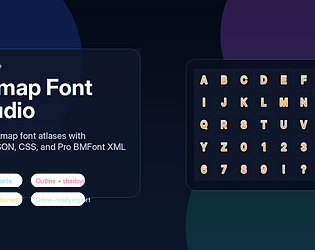 Create bitmap font atlases with PNG, JSON, CSS, and BMFont XML export.