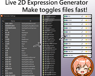 A lightweight Windows utility for Live2D Cubism modelers to generate .exp3.json expression files from Name/ID pairs.
