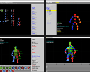 2D skeletal animation system, multiple editors for creating complete animated characters and objects.