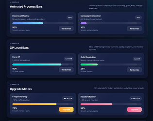 HTML5 progress bar UI, XP leveling system, upgrade interface, idle game progression bars, animated CSS progress bars.