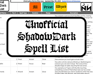 An unofficial tool with every official Shadowdark RPG spell from the Core Rules!!