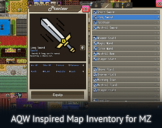 Map inventory plugin for RMMZ. Inspired from AQW's inventory design.