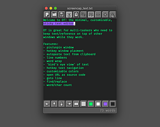 OT is a cozy, colorful little sticky text editor for multtaskers who need to keep text/reference on top of other windows