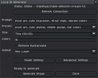 Make pixel art locally with ai directly on Aseprite
