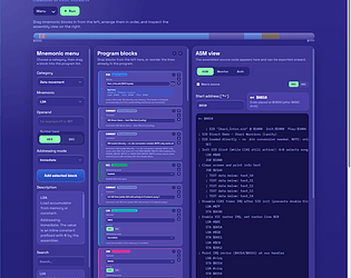 C64 Visual Assembler is a desktop application that lets you write Commodore 64 machine code programs visually