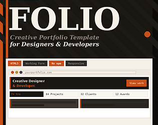 Premium single-file portfolio template for designers & developers. No frameworks, no npm — just open and customize.