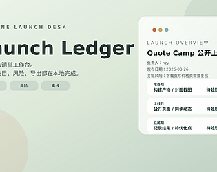 Offline launch checklist and release planning desk for indie makers and small teams.