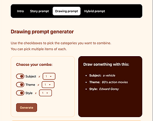 Generate a creative prompt (non-AI) to unblock you for creating your next drawing or story