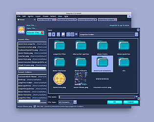 A custom dark theme for Aseprite with accessibility improvements. Free fonts included.