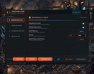 Fracture Field Trainer: Mega resources, instant bomb recharge, super drone efficiency, no upgrade cost and more.