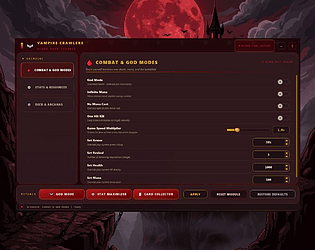 Vampire Crawlers Cheat: God mode, infinite mana, max stats, all cards/arcanas, game speed, and more — 30 features