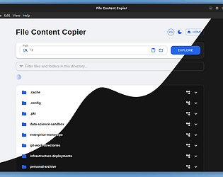 Explore directories and quickly copy file content, directory tree, or Git info