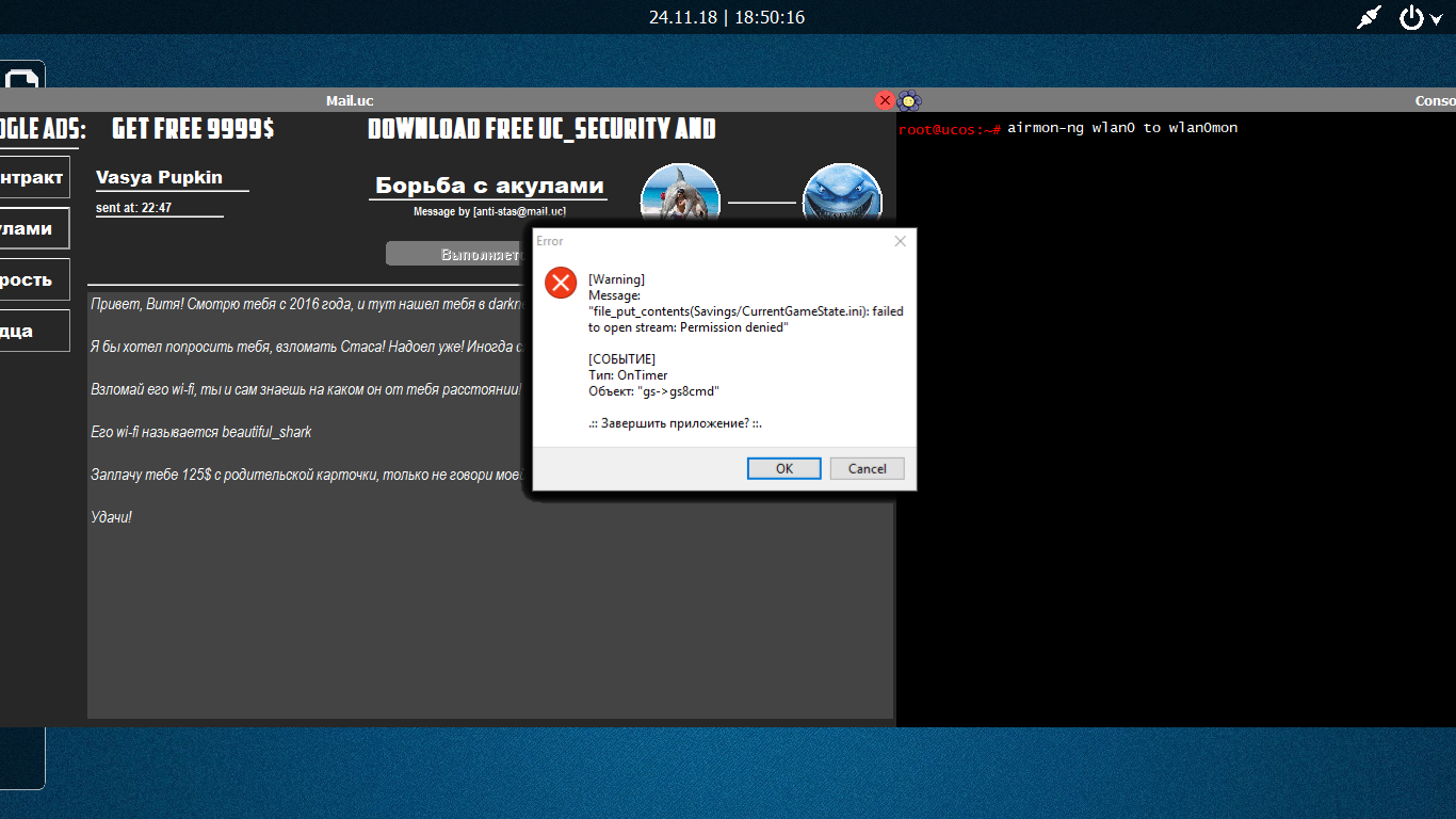 У меня, когда я вхожу и прописываю airmon-ng wlan0 to wlan0mon, выскакивает вот такая ошибка: Причем выскакивает она много раз, и ее невозможно убрать, приходится закрывать программу. Как пофиксить?