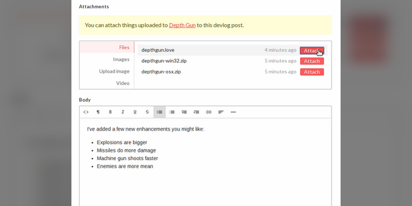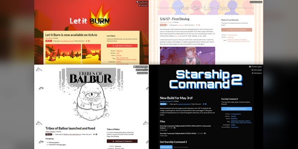 For many developers, projects on itch.io are living pages with frequent updates, new images, and gameplay videos. We think it's important for creators to start building and talking with their audience early and a development log is a great way to do that!